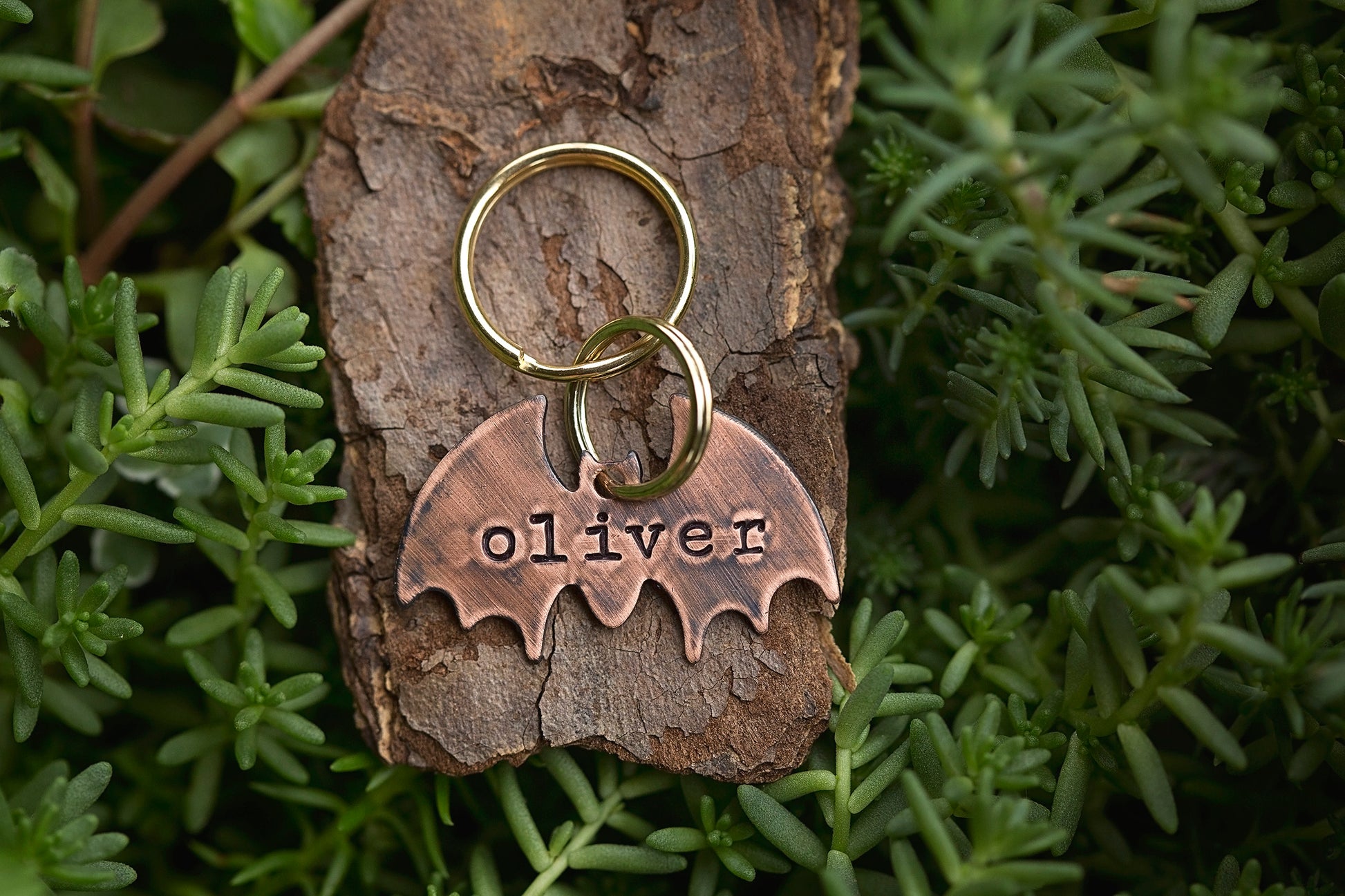 Please note: The patina finish on each tag is unique, so your tag might have a bit more or less patina than the one pictured. Because metal is non-porous and doesn't absorb color, over time the black darkening inside the letters might fade some, but the impression will remain and the stamping will still be legible.